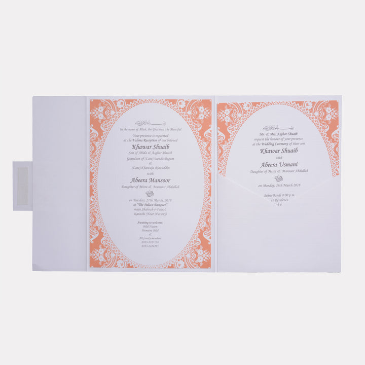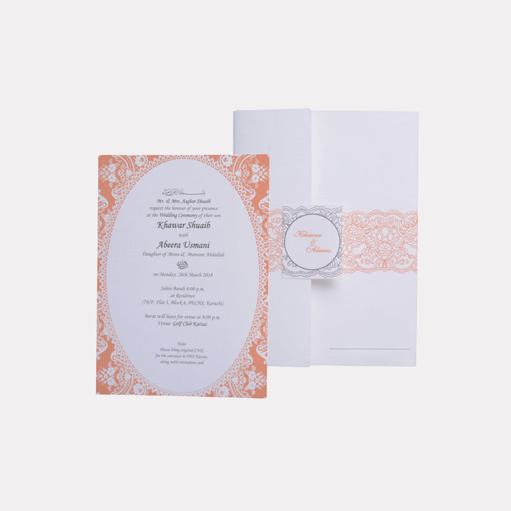 "This invitation perfectly captures 'A Touch of Peach Elegance' with its delicate coral and peach tones, creating a sophisticated and romantic feel."