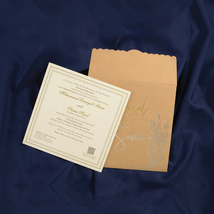 "The Celebration Dispatch: A timeless announcement of joyous union. Meticulously crafted, this elegant invitation extends a warm welcome to share in the cherished moments of our special day."