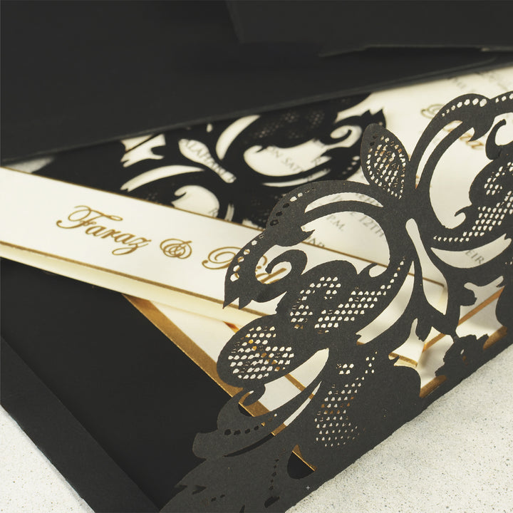 "The Joyful Journey Unfolds: A comprehensive invitation suite designed to guide you through every cherished moment of our celebration, from the vibrant festivities of the Mehndi to the elegant reception of the Valima. Join us as our love story beautifully unfolds."