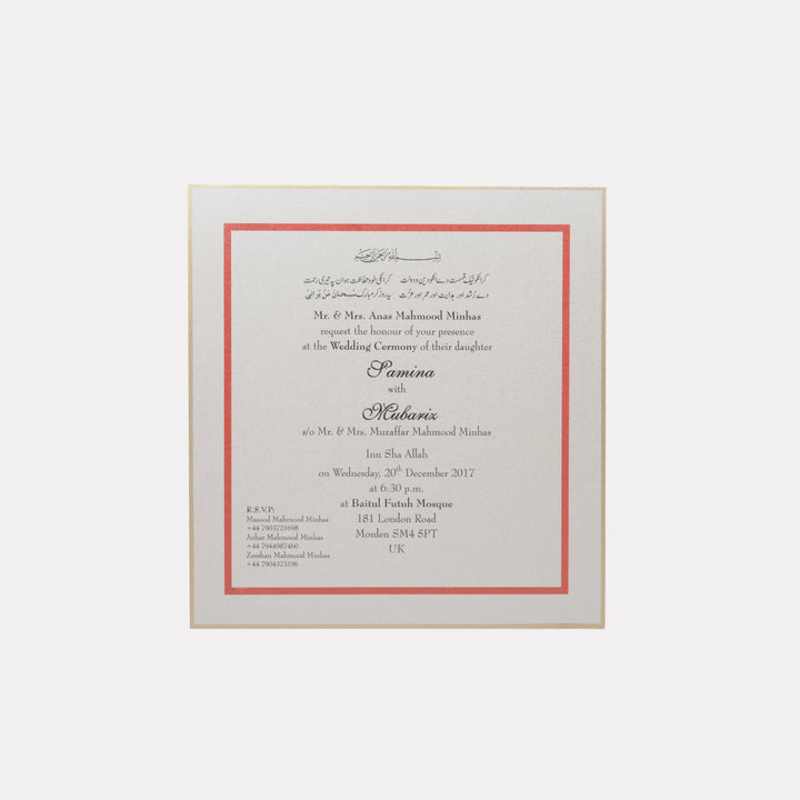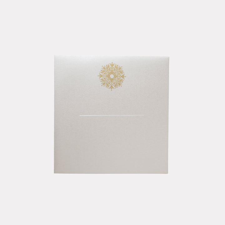 "A beautifully understated invitation, featuring a clean ivory canvas subtly enhanced with a delicate golden motif, exuding refined elegance."