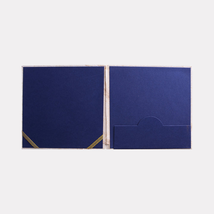A timeless union wrapped in elegance — Blue Bond features a regal palette of deep navy and gold, symbolizing the strength and sophistication of a lasting commitment. With its structured layout and refined details, this invitation speaks of tradition, grace, and a bond that endures.