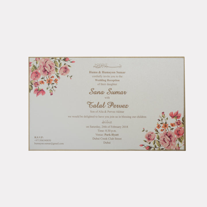 "Imagine a garden of love, captured on paper: this invitation combines timeless elegance with vibrant floral clusters, inviting you to a truly special occasion."