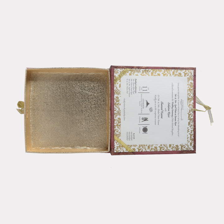 "Unfold a world of wonder with our Treasure Trove Invite. This luxurious box invitation opens to reveal a glistening, golden interior and an elegantly framed card, promising an event as precious and unforgettable as its presentation."