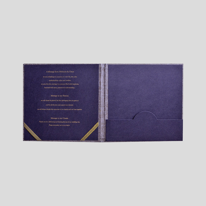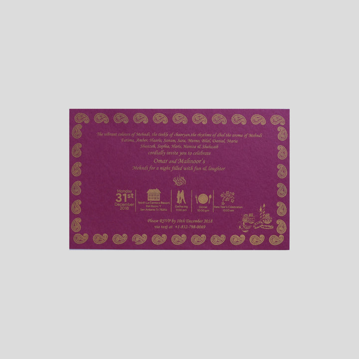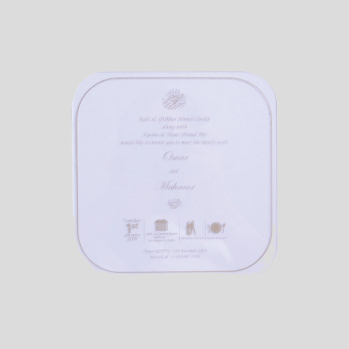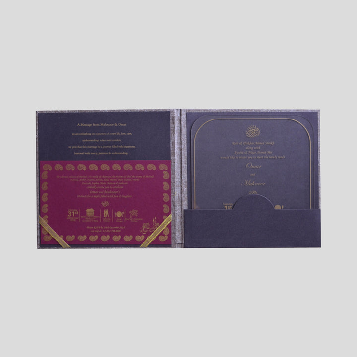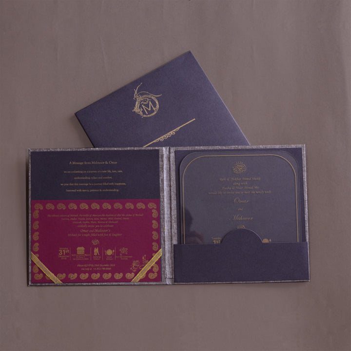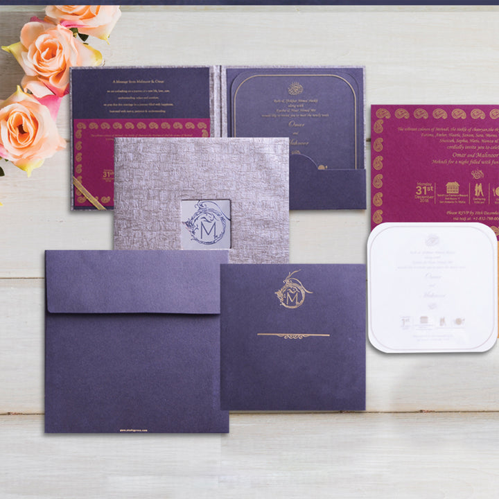 This 9" by 9" squared wedding and mehndi card gives a premium feel, the gold-plated; modern design exudes sophistication with intricate detailing. Its luxurious style is perfect for those who appreciate traditional luxury. Elevate your space with this sleek and elegant piece.