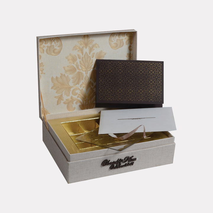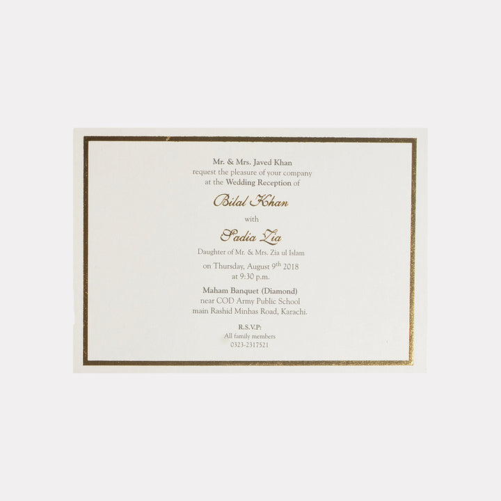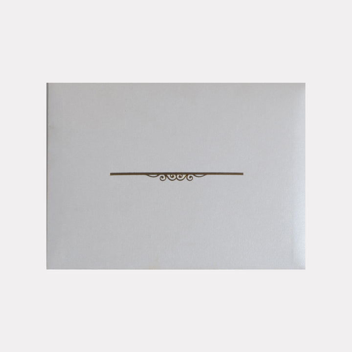 This wedding size card features a tasteful cream-colored background with a stunning golden border. With its timeless and classic design, it adds a touch of sophistication to any space. The perfect addition to elevate your decor.