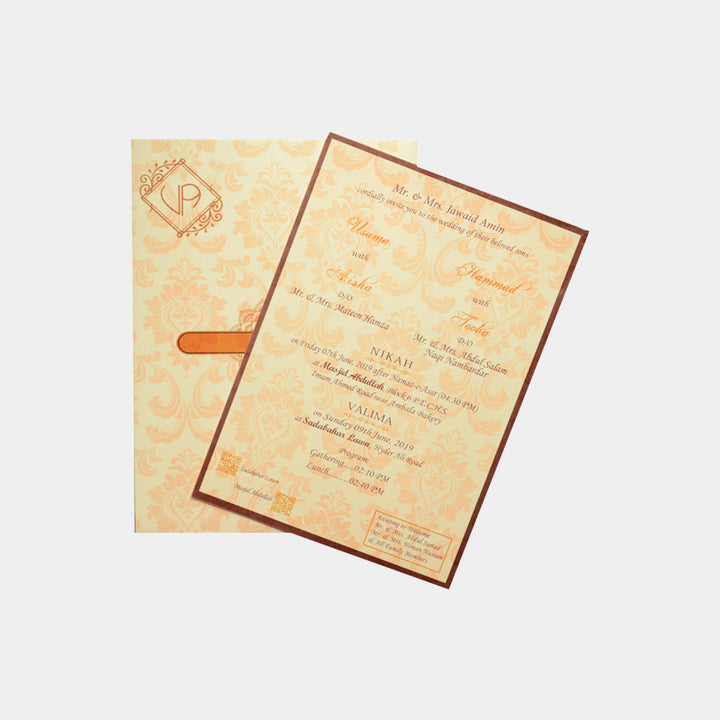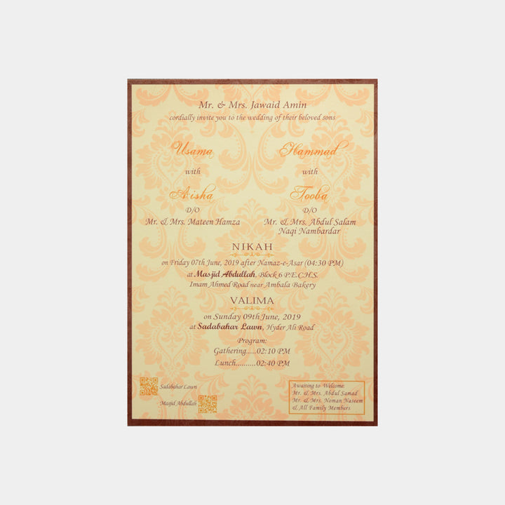 Celebrate two beautiful journeys with our "Dual Destiny Invitation." Adorned with traditional ornate patterns and warm, inviting hues, this elegant card beautifully announces the joyful union of two couples, setting the stage for a truly memorable celebration.