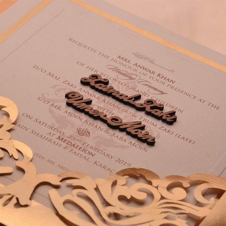 "With immense joy and elegant grace, we invite you to A Grand Reception in celebration of the sacred union of Zainab and Umer. Join us for an evening of joyous festivity, marking the beautiful beginning of their shared journey. Your esteemed presence would be the most cherished blessing as we commemorate this momentous occasion."